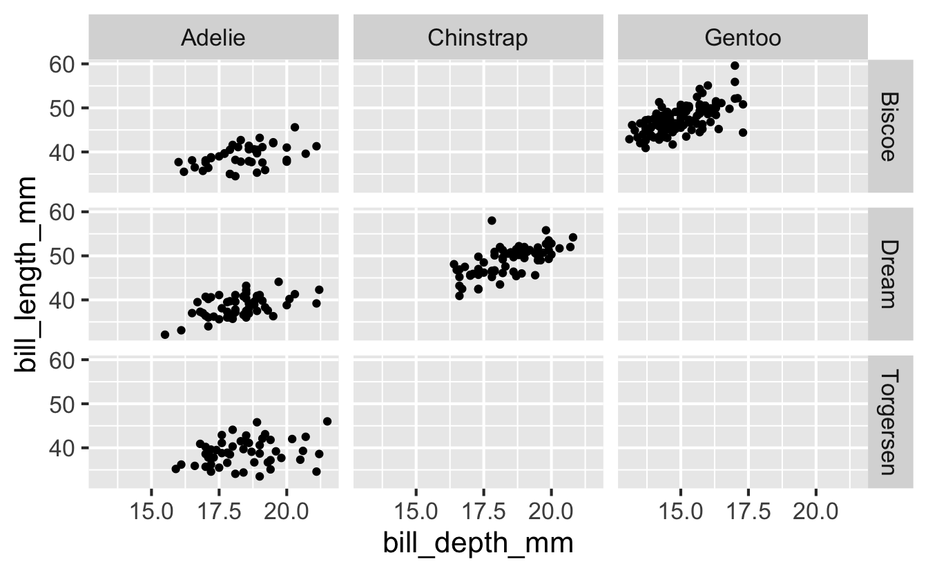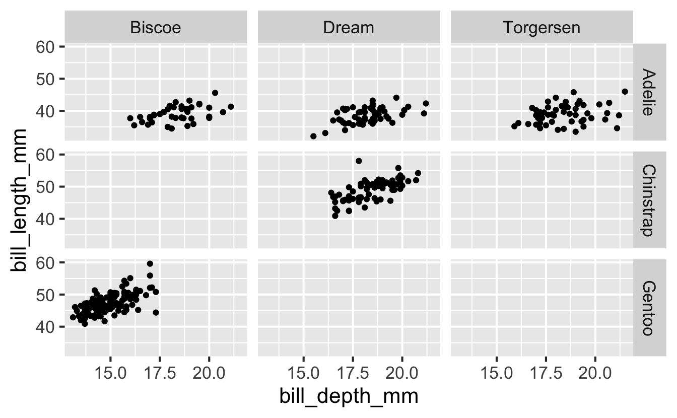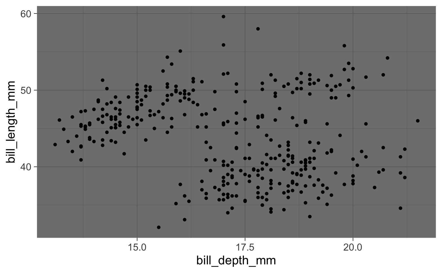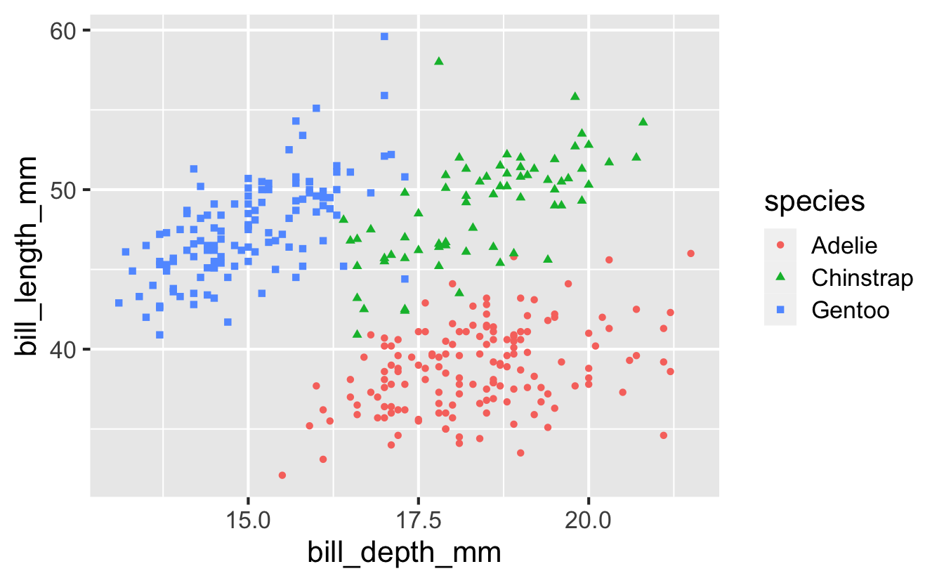 theme()ggplot(penguins, aes(x = bill_depth_mm, y = bill_length_mm, color = species)) +