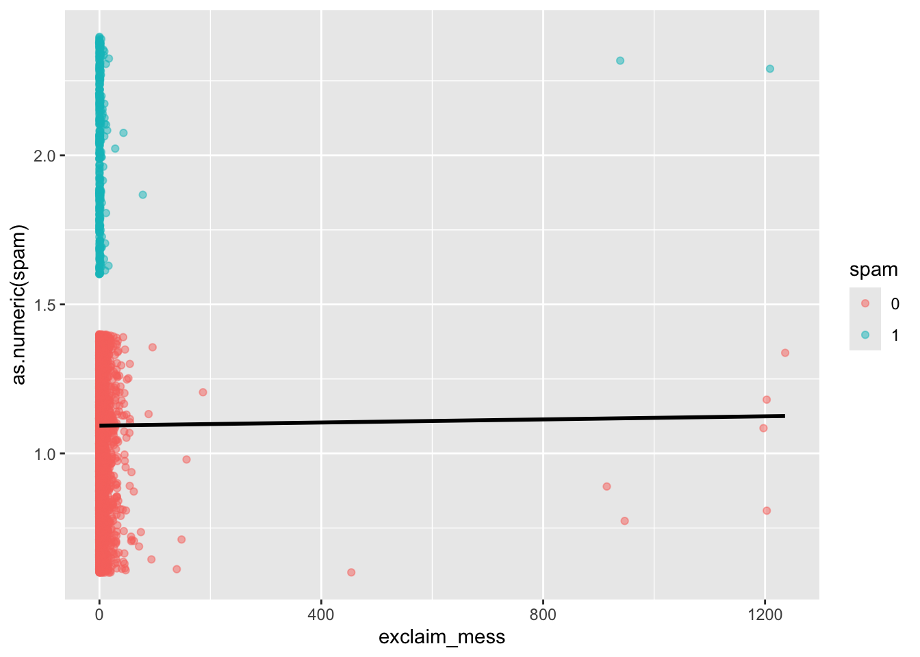 fit(as.numeric(spam) ~ exclaim_mess, data = email)