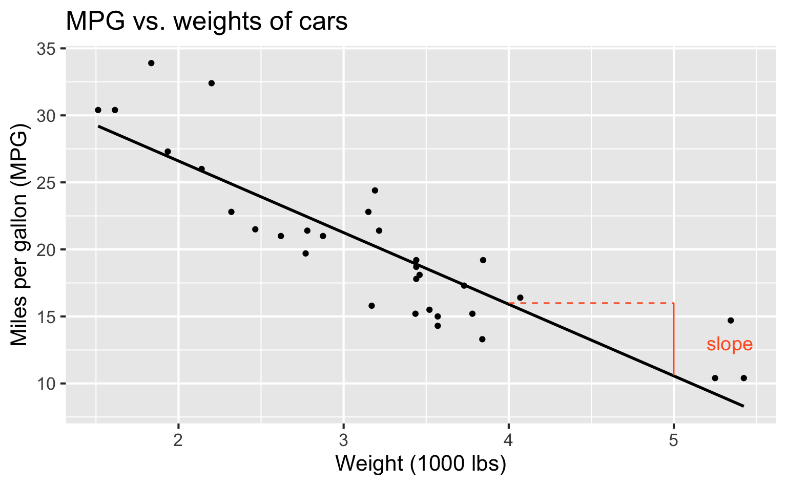 Describe: Quantify the relationship between predictor(s) and outcome with slopes