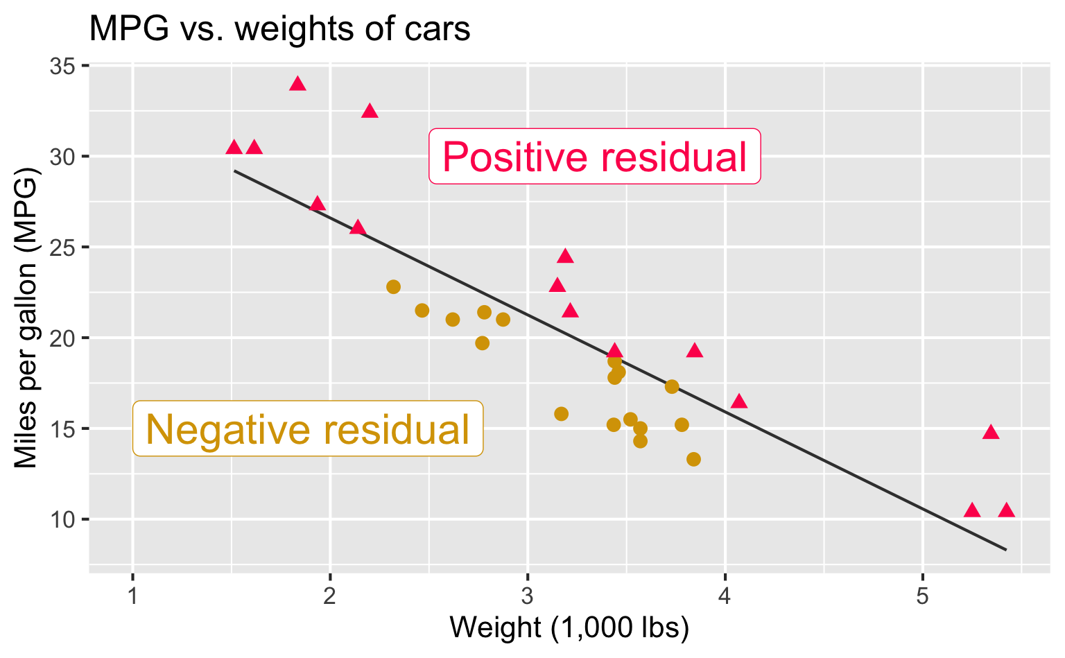 Residuals: A measure of how far each case’s observed value is from its predicted value (based on a particular model)