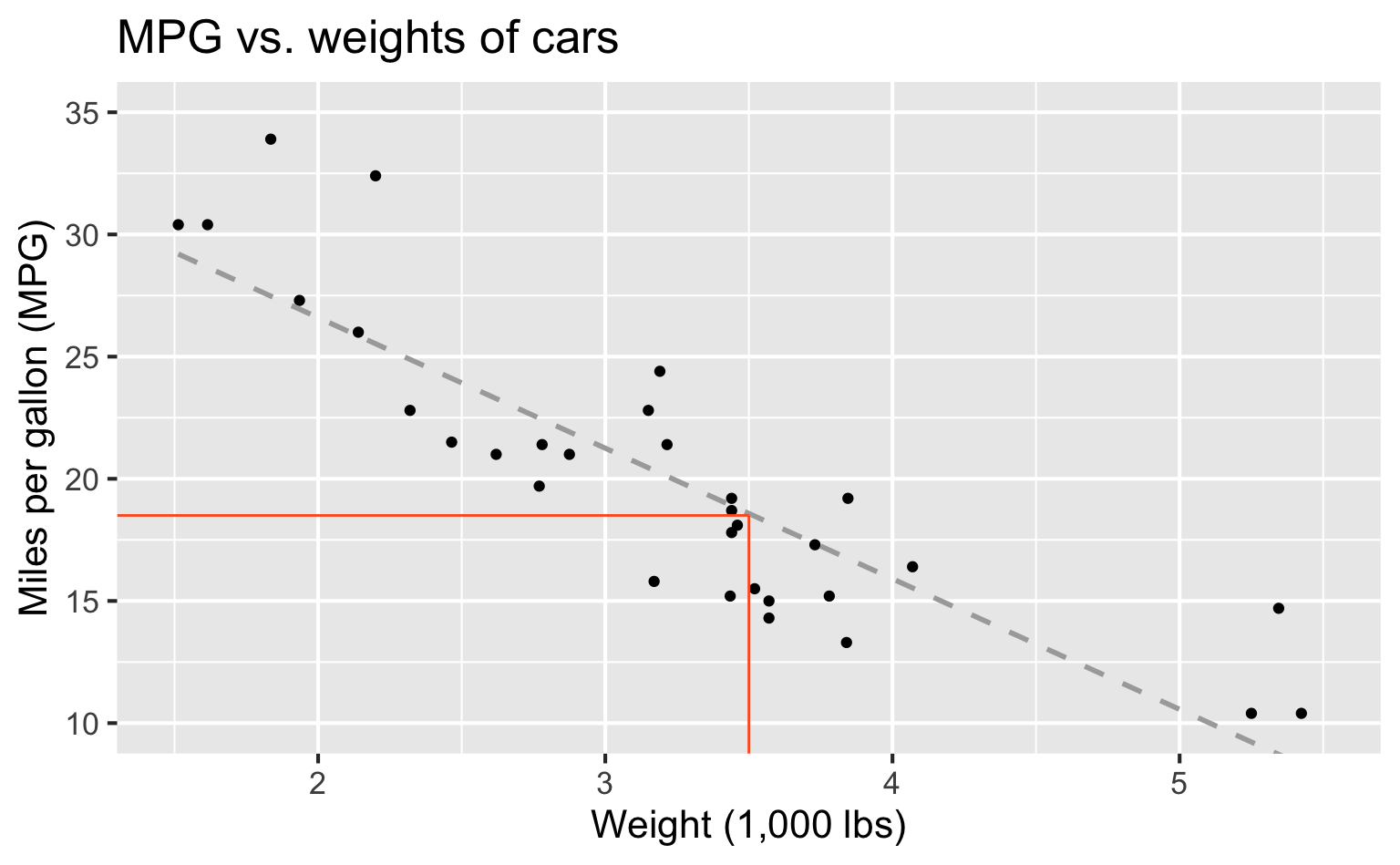 Predict: What is your best guess for a car’s MPG that weighs 3,500 pounds?