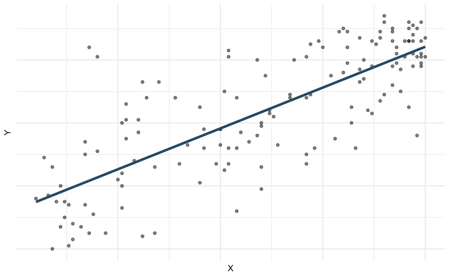 A regression model is a function that describes the relationship between the outcome, \(Y\), and the predictor, \(X\).