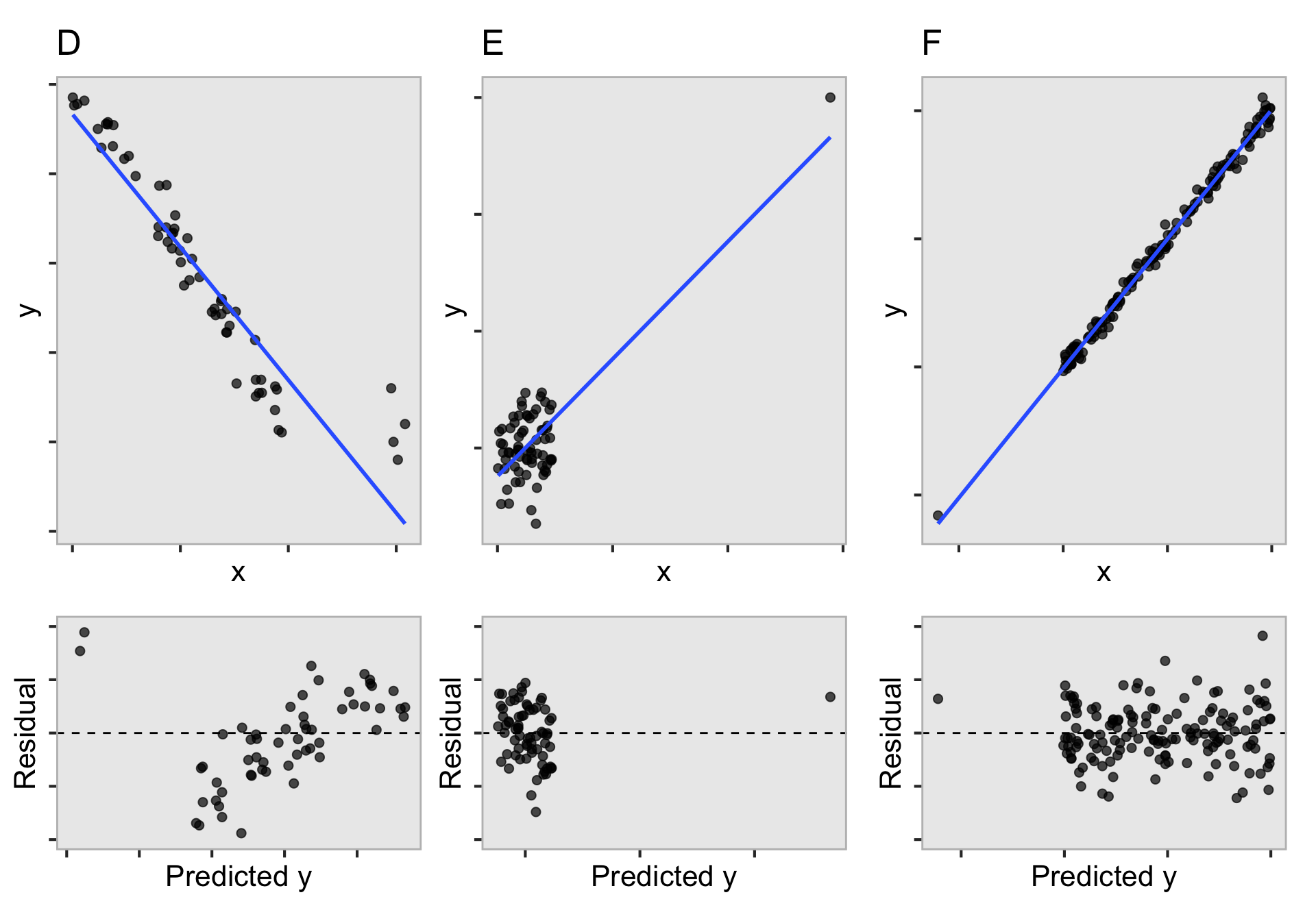 Points that are in-line with the bivariate model usually do not influence the least squares line, even if they are extreme in \(x\), \(y\), or both.