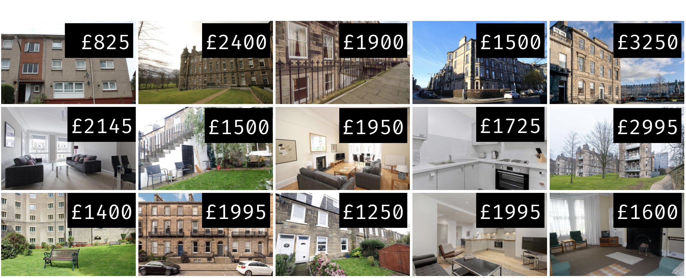 Fifteen 3 bedroom flats in Edinburgh, Scotland were randomly selected on rightmove.co.uk.